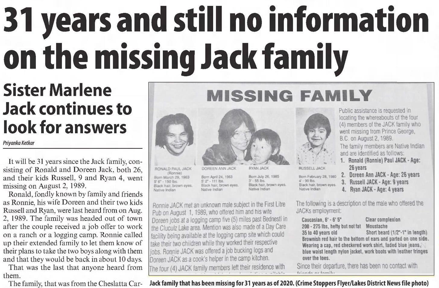 M,Serena, “MISSING: The Jack Family” June 5, 2020, updated August 23, 2020 https://www.canadaunsolved.com/cases/missing-jack-family-1989-bc