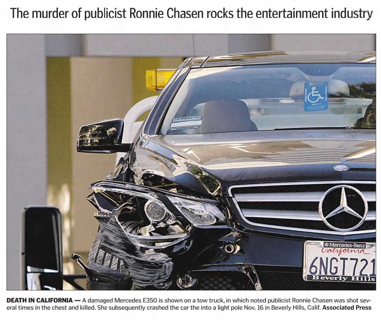 On November 15th, 2010, Ronni had attended the premiere of Burlesque at a hotel in Hollywood. She and her agency were directing an Oscar campaign for Cher, who was one of the film’s leads. Ronni left the premiere and was driving back to her flat in the Regency Wilshire building.
