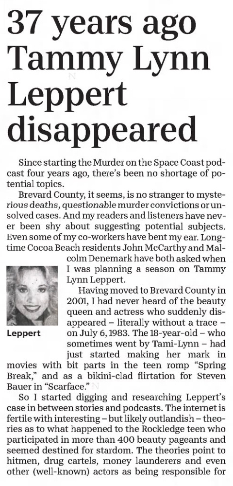 On July 6, 1983, Tammy Lynn Leppert, an 18-year-old aspiring actress disappeared near Cocoa Beach, Florida following a mental health crisis. Her family believes she may have been a target