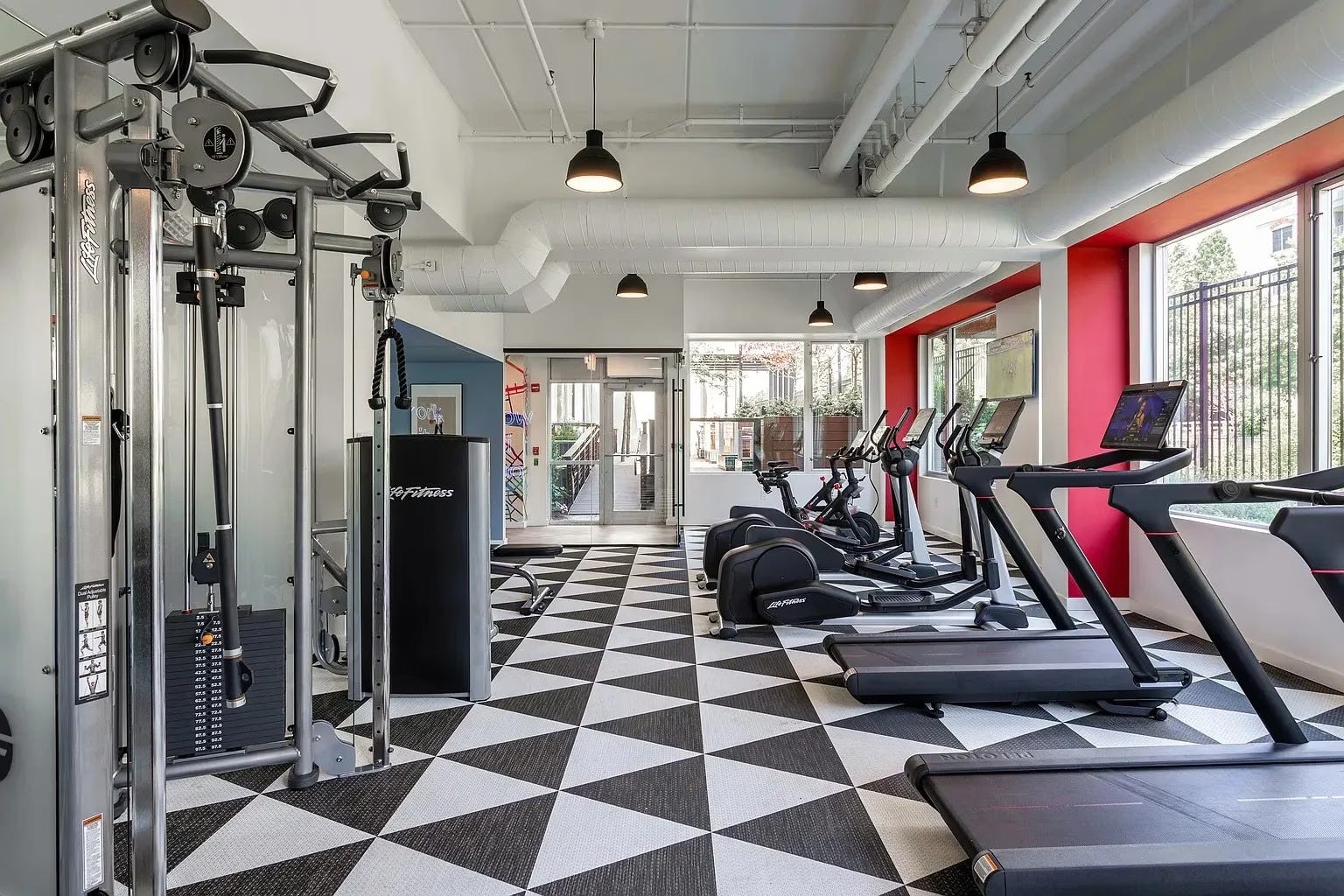 Shortly before 5 p.m., Sam was seen on the apartment building's surveillance footage entering the gym on the first floor. He remained in the gym for around 30 minutes, then walked back through the lobby, grabbed what appears to be the mail, and entered the elevator to go back up to their apartment.