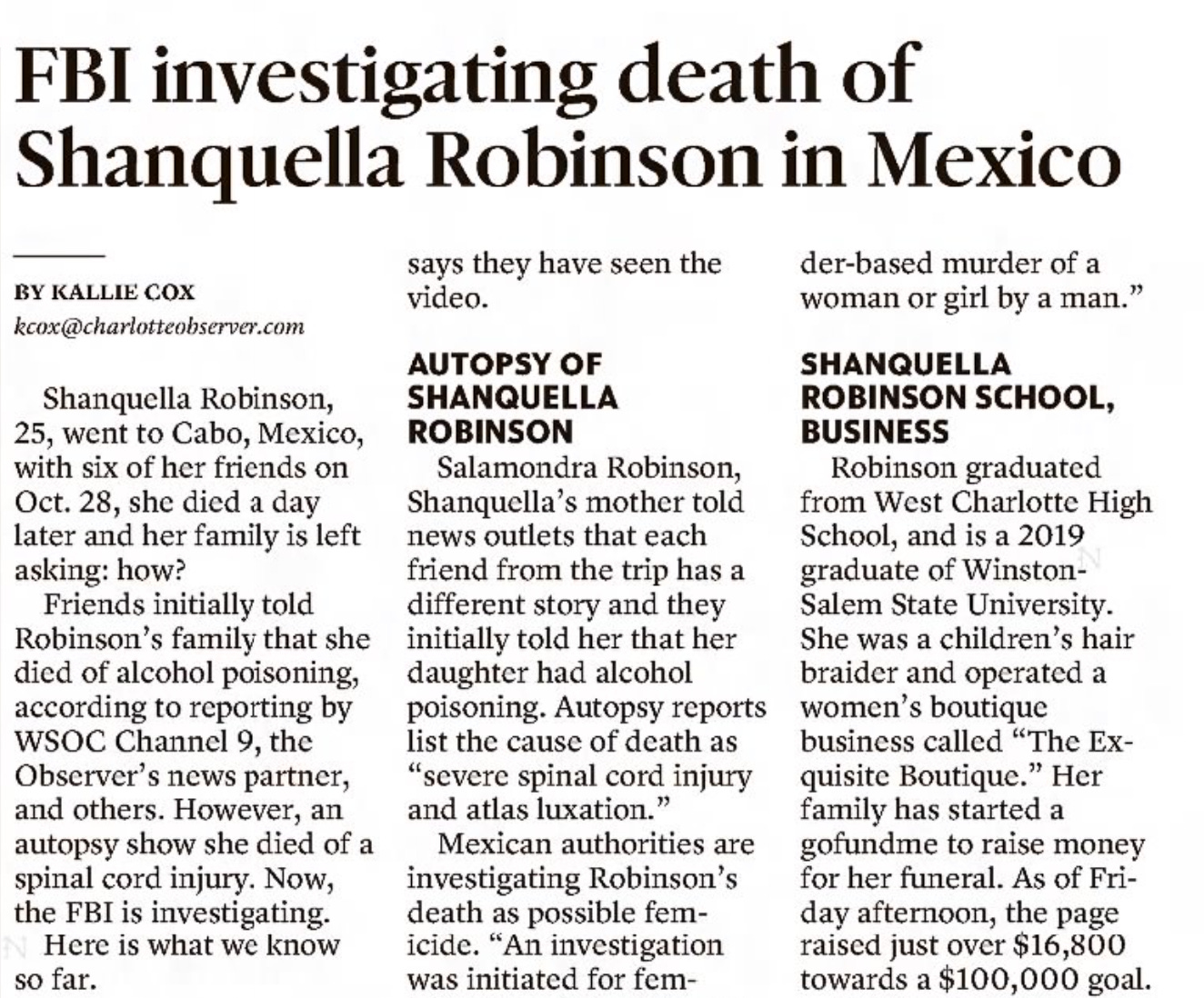 WordInBlack. “New Details: What Really Happened to Shanquella Robinson?” The Sacramento Observer, 30 Nov. 2022, sacobserver.com/2022/11/new-details-what-really-happened-to-shanquella-robinson/.