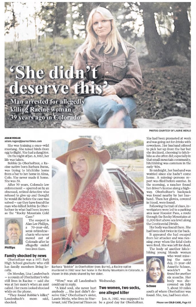 Dziemianowicz, Joe, “Orange Sock Connects 2 Colorado Women Abducted and Shot During 1982 Blizzard” Oct 7, 2023, https://www.oxygen.com/buried-in-the-backyard/crime-news/bobbie-jo-oberholtzer-annette-schnee-murder-alan-phillips