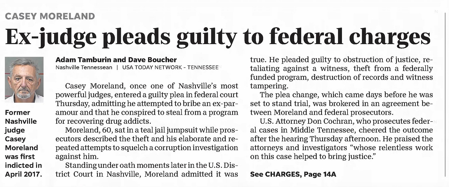 For Nashville, Tennessee-based Judge Cason “Casey” Moreland, this authority became a tool of power and corruption. The former Davidson County General Sessions Judge was charged with abusing his authority to exploit others while benefiting himself.