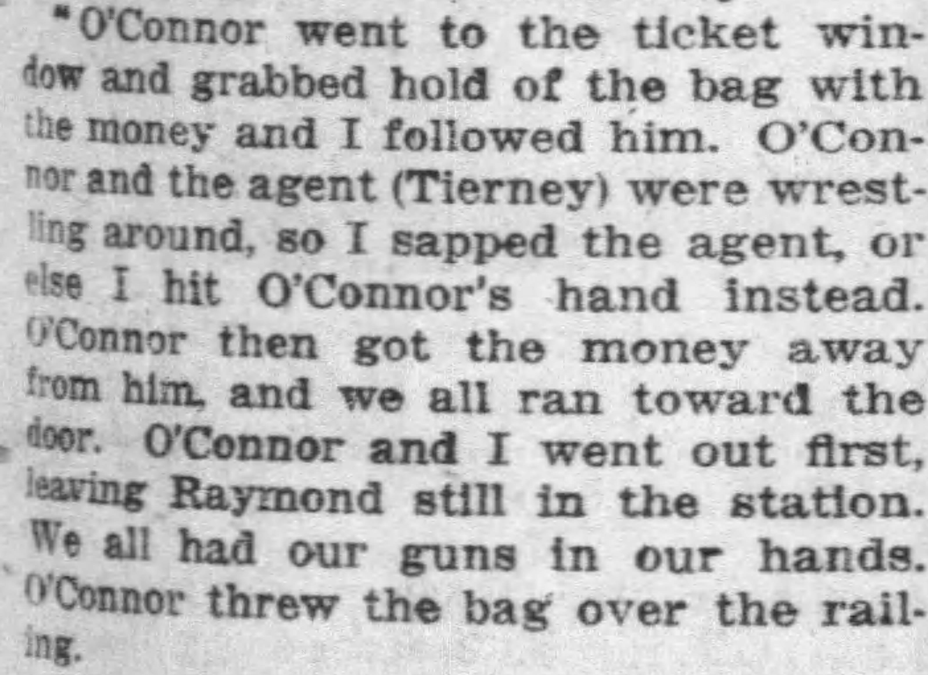 Two of the other men fled in a different direction and were later captured. O’Connor, similar to his escape after shooting Det. O’Neill jumped onto the running board of a passing car and forced the driver at gunpoint to speed away.