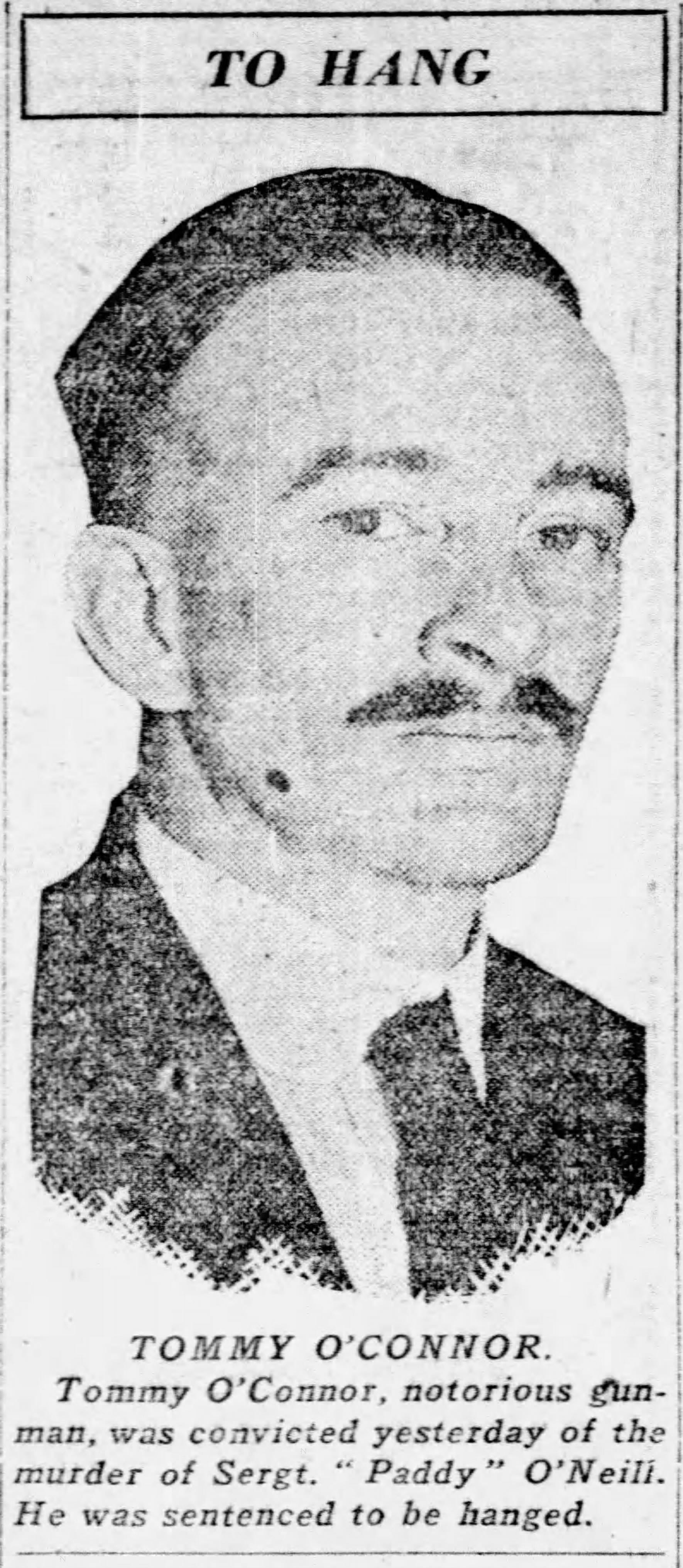 “O’Connor Found Guilty; Doomed To Die By Rope.” Chicago Tribune, 25 September 1921, https://www.newspapers.com/image/355175184/?match=1&terms=tommy%20o%27connor