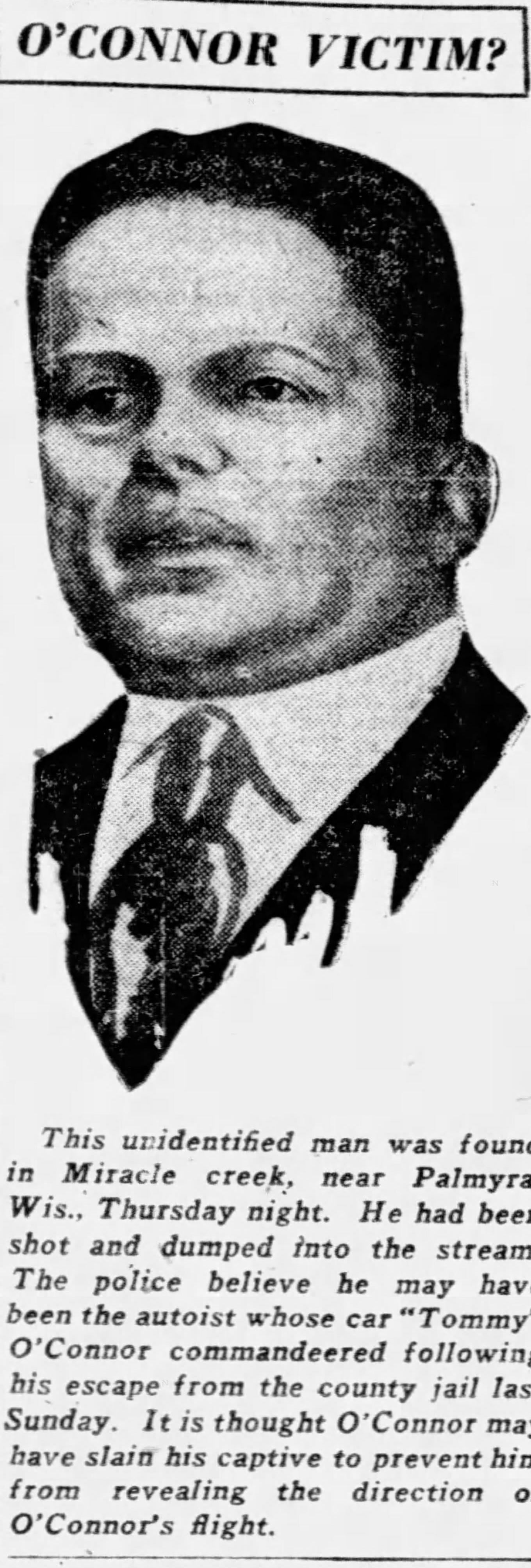 On December 17, an unidentified man was found shot and dumped in a creek near Palmyra, Wisconsin. Police believed the victim may have been the driver of the last car that O’Connor hijacked, as the man had not been seen since the day of the escape. The body was also found in only underwear, meaning his killer had likely taken his clothing.