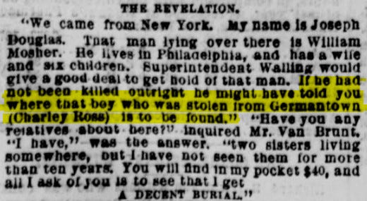The burglar was hit multiple times, and as he lay dying, he made a startling confession. He confessed to Holmes that his name was Joseph Douglas. The other man with him was William Mosher. “We kidnapped a boy named Charley Ross for the money,” he said. Holmes had read the newspapers and was familiar with the case. He asked the obvious question. “Where is Charley?”