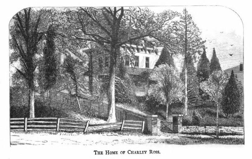 In 1874, the Christian K. Ross family lived on East Washington Lane in Germantown, a wealthy section of Philadelphia, Pennsylvania. Mr. Ross and his wife had seven children, including Walter, aged six, and his younger brother Charley, aged four. The two brothers were constant companions and often played together in the front yard of their spacious home.