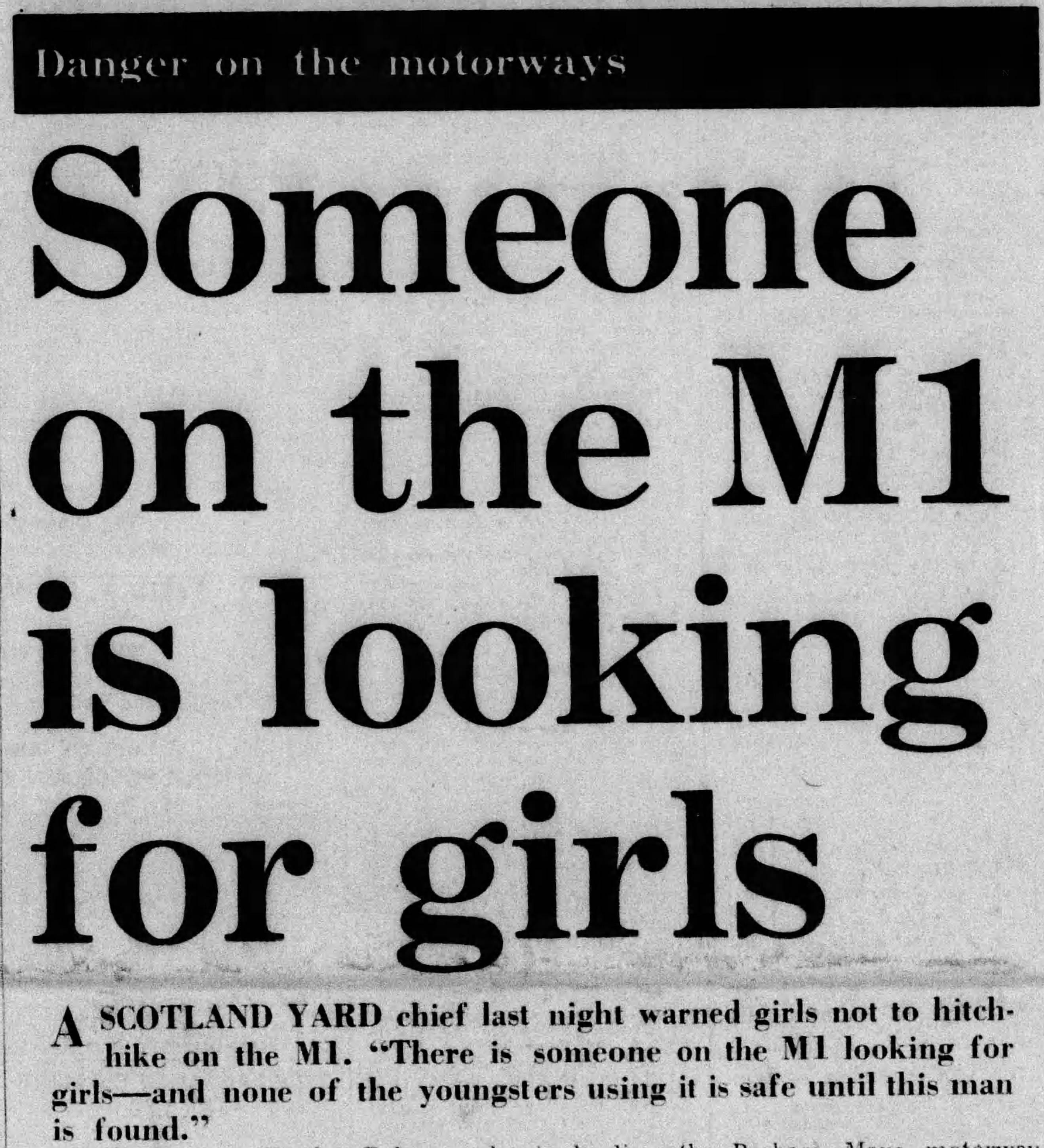 In 1970, two young women were brutally assaulted and murdered after hitchhiking along Britain's M1 motorway. Because of the striking similarities, Investigators believe they may be connected