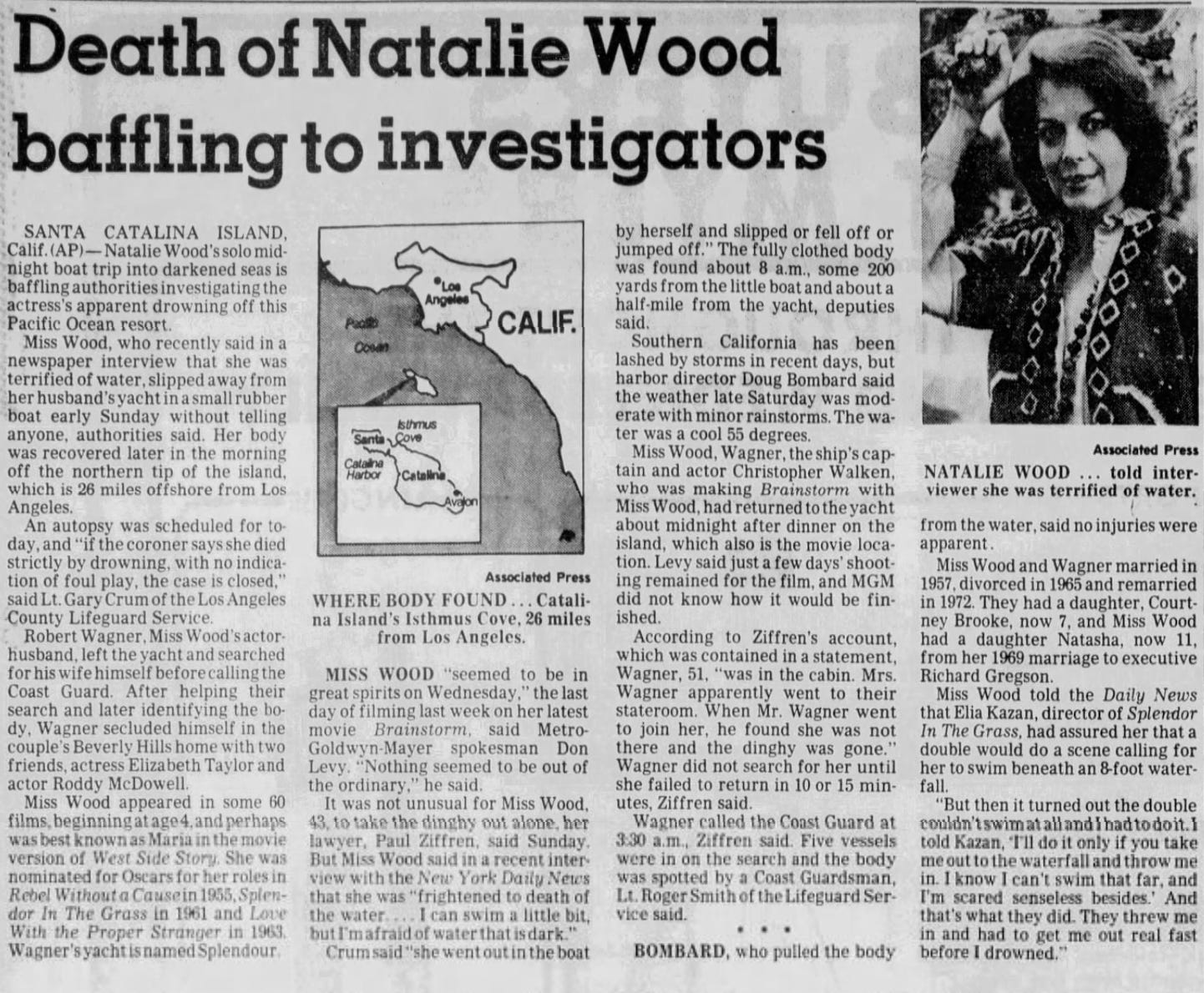 The November 1981 drowning death of actress Natalie Wood remains one of Hollywood’s most intriguing unresolved mysteries. Nearly 45 years after it occurred, many questions linger, including how a woman who had a well-known phobia of being in dark water and whose greatest fear was drowning ended up in the Pacific Ocean on a chilly November night.